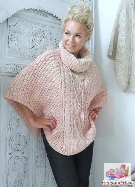 Теплое пончо, вяжем спицами