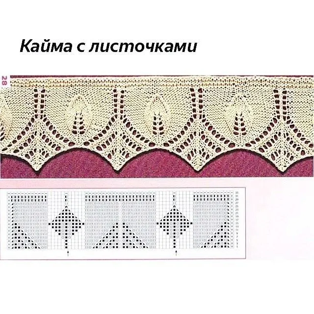 Узор для каймы с листочками, вяжем спицами