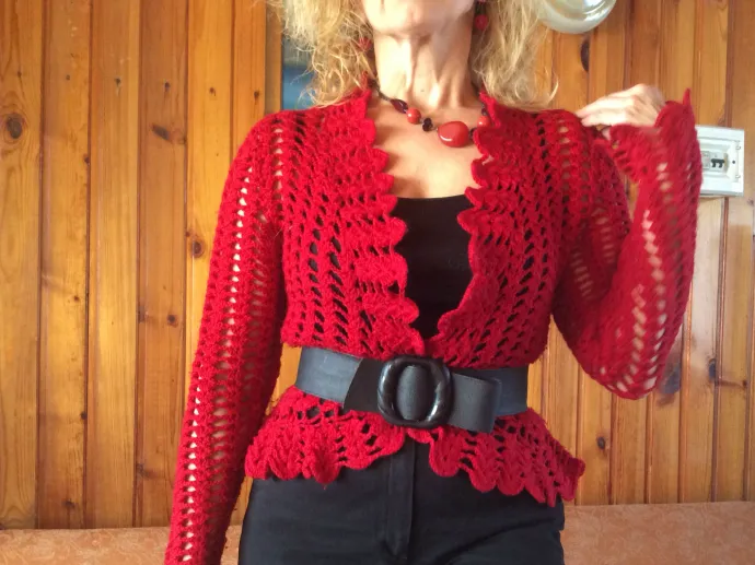 Прелесть! Так красиво выглядит жакетик, такой он интересный, сочный, стильный