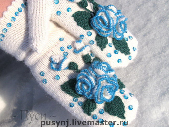 да, я тоже потеряла дар речи! а потом подумала — такое нужно делать на кофточках, варежки какая-то ненадежная часть гардероба! теряются, в основном! хоть на резинку, как в детстве, их пришивай!