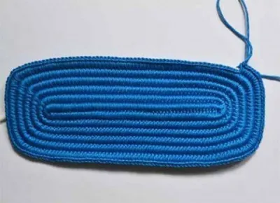 Когда дошли до конца цепочки, разворачиваем и вяжем в обратную сторону. В последнюю петлю цепочки провязываем несколько столбиков без накида, чтобы дно закруглилось.
