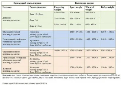 В помощь рукодельницам - таблицы расхода пряжи при вязании.