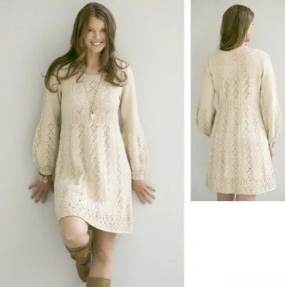 Теплое платье, связанное спицами
