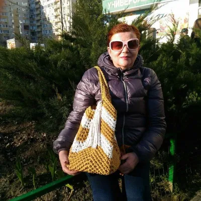 Сумка из пряжи бисквит...Так она выглядит при дневном, солнечном освещении...