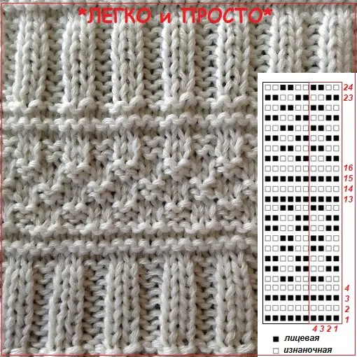 Чередование лицевых и изнаночных петель создает гармоничный рисунок для вязания мужских свитеров или шарфов. Узор двухсторонний
