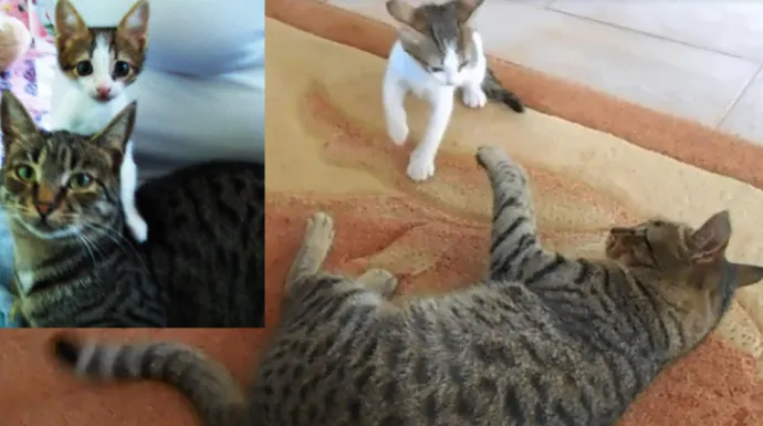 Несмотря на маленький рост и совершенно младенческий возраст Пифагор стал центром домашней вселенной и затейником всевозможных проказ и шалостей. Ощущение, что он находится сразу в десяти местах одновременно. Вот он поливает цветы вместе с папой - через секунду вяяжет с мамой. Достается от него и кошке , которая на год старше. И так каждый день с утра до вечера.