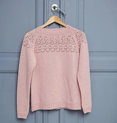 Розовый джемпер с ажурной кокеткой, вяжем спицами