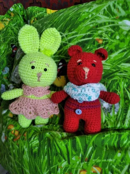 Связала в подарок игрушечки. Без повода, просто хочется порадовать малыша. Игрушки связаны из кавказской пряжи, одежка из акрила "детская новинка". Крючок №4.