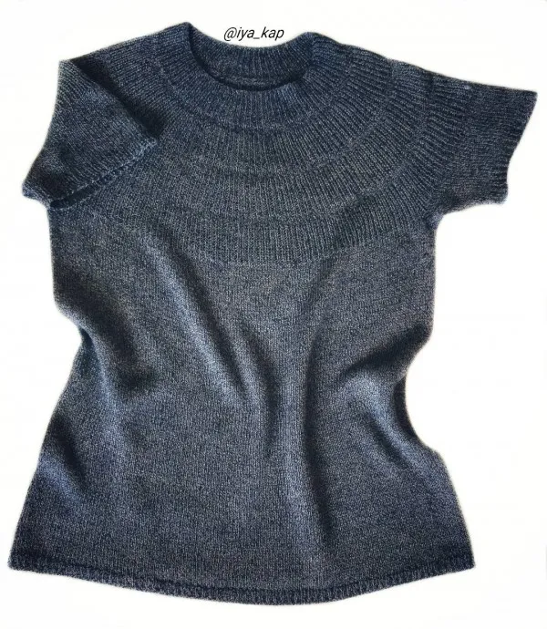 Топ (футболка) связан из итальянской бобинной пряжи Pecci Filati Magritte (73%лён, 23%хлопок), спицы 2 и 3.
