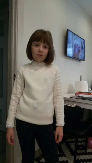 Очень красивый свитерок. И узоры красиво расположены. Нарядно и мило.