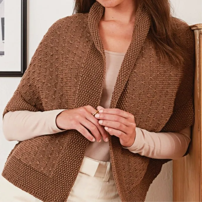 Цельновязаный жакет-накидка, вяжем спицами