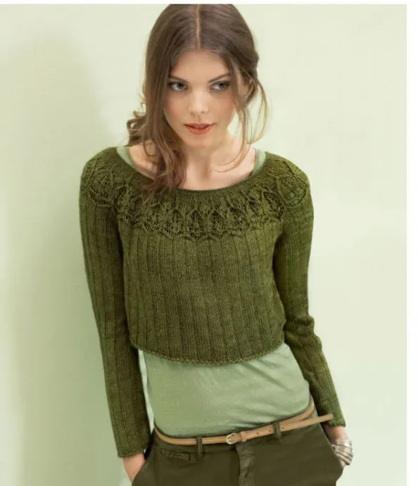 - Пряжа (70% шелка, 30% шерсти яка; 145 м/50 г) — 300 (350) 400 г оливково-зеленой;