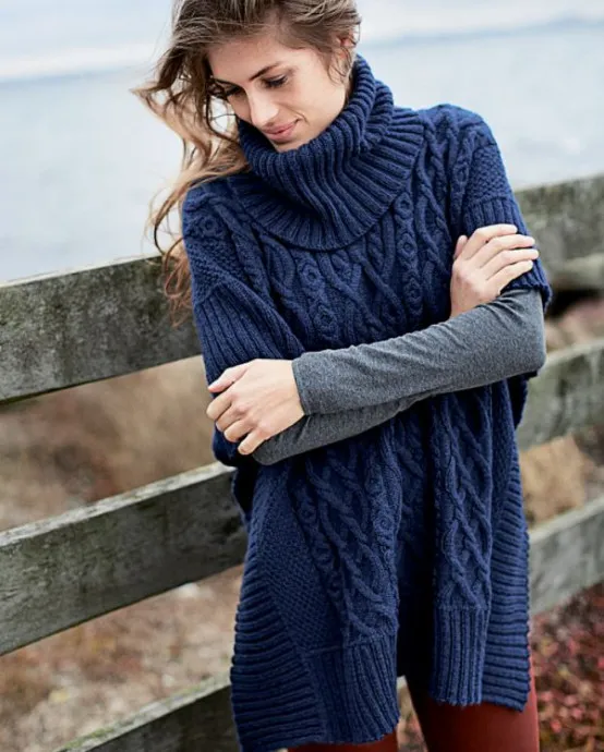 - Пряжа (100% шерсти; 50 г/125 м) — 23 (24) 25 (26) мотков синей; круговые спицы №3 и 3,5 длиной 40 и 80 см;