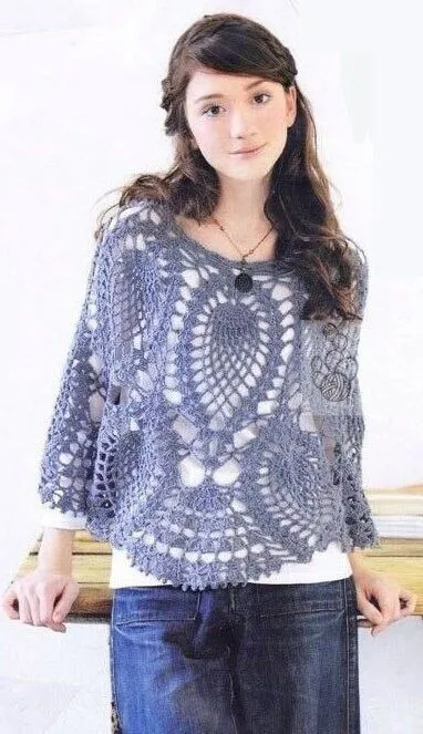 Ажурная накидка-пончо