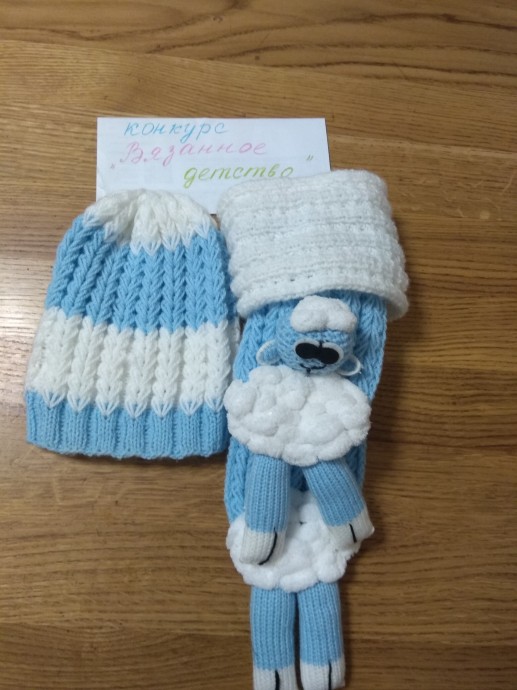 Использовала пряжу Ярн Арт Бэби, два цвета. Спицы № 4. Овечка из остатков пряжи.