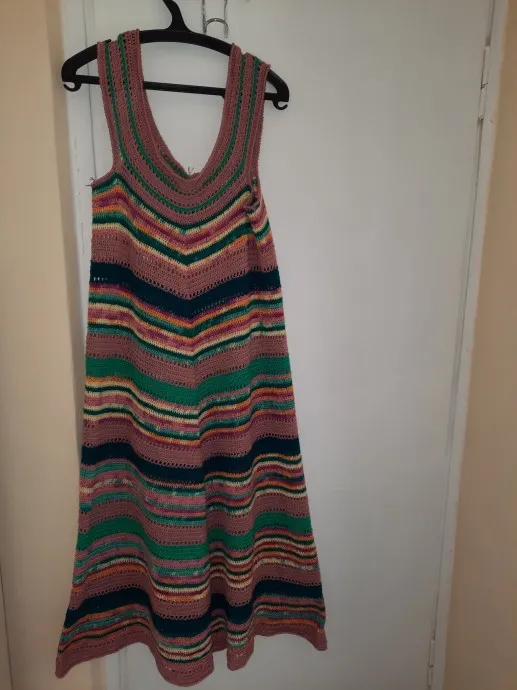 Немного не упала. лето закончилось. но меланж и Миссони будет в тренде в след. сезоне.. а началось все просто попался интересный фасон в очень старом журнале (еще прошлого века).ну уж очень понравилось и захотелось.. к сожалению. время .выбор ниток и фигура внесли свои коррективы.. но глаза боятся, а руки делают. вот и пришлось три раза перевязывать. пока получилось. что требовалось..