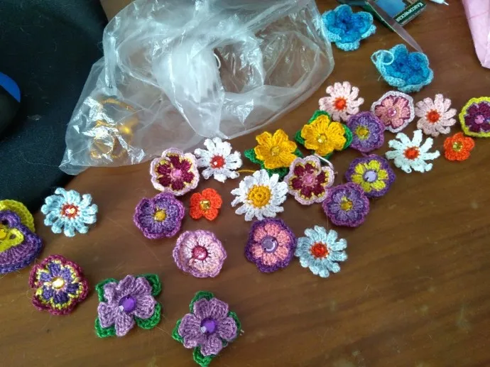 Пригодятся для украшения изделий - варежек, кофточек, грелок на чайник, салфеток. Иногда не хочется вязать большую вещь, а хочется сделать что-то красивенькое и быстро. Вот и накопились эти цветочки