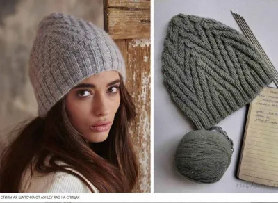 Получилась очень приятная шапочка, мягко облегающая голову. Резинка прикрывает лоб и служит обрамлением основному узору. От неё уходят по диагонали витые полосы, которые формируют треугольники, собирающиеся вершинами к верхушке шапки. Рисунок получился динамичным, символизирующим собой движение и перемены. А качественная мягкая пряжа делает шапочку ещё более привлекательной за счёт едва заметного пушка, лёгкой дымкой окутывающего девичью головку.