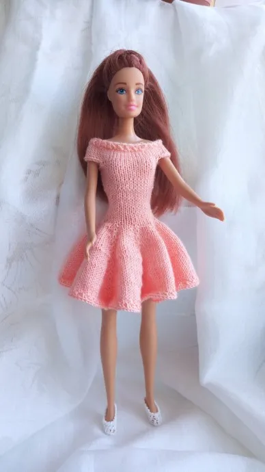 Приветствую всех, кто заглянул на мою страничку! Давно восхищаюсь нарядами для куколок, которые выкладывают здесь рукодельницы. Вот и мне довелось связать платьице для куколки Барби, которая была приобретена около 30 лет назад для моей дочки. Теперь ей играет моя внучка. Первое вязаное платье для куклы я назвала Диско, оно мне напомнило стиль 60 годов. Связано из пряжи FOREVER alize CROCHET,300м/50г, цвет 282, спицами №2. Вязала юбочку по правилу реглана.