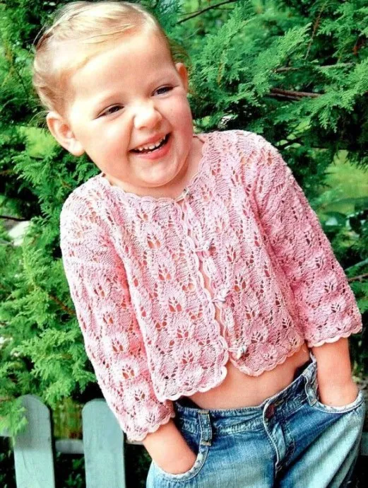 Края рукавов и всю кофточку обвязать крючком следующим образом: