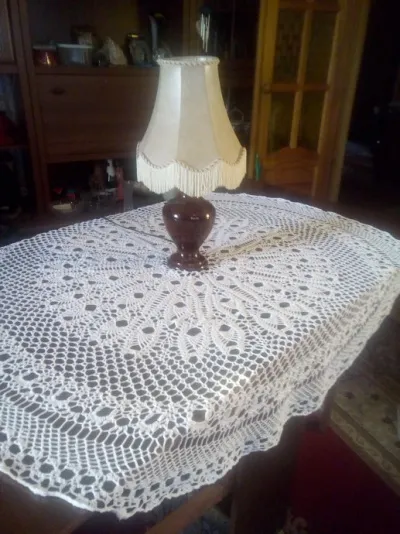 Девочки захотелось связать скатерть. На просторах интернета нашла описание. Взяла в руки крючок и на одном дыхании связала. Вязала ее из пряжи Анна Twist 100=500м. Скатерть получилась d=110 см. Оцените, как получилось?