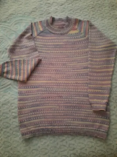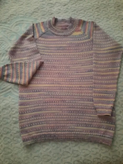Связался вот такой пуловер на плотности "9", резинка 1х1 на плотности "7".