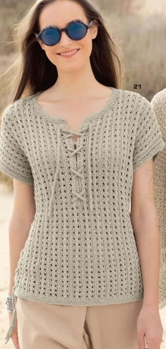 Ажурный пуловер без рукавов, вяжем спицами