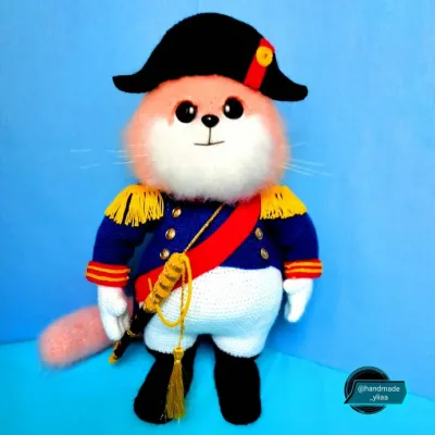 Котик связан крючком. Стоит самостоятельно на проволочном каркасе.