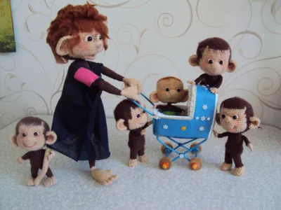 Эта обезьянья семейка была связана на год обезьяны в онлайне итальянской мастерицы idotti , по мотивам известного советского мультфильма, на форуме амигуруми.