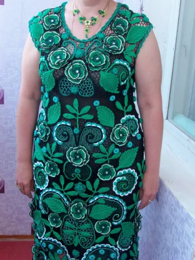 Вы отважная рукодельница! Не каждая мастерица возьмётся за такую работу, да ещё и симметричными мотивами в технике ирландского кружева! БРАВО! Поздравляю вас с такой наикрасивейшей обновкой, которая вам очень идёт! Спасибо вам за такую роскошь!!!