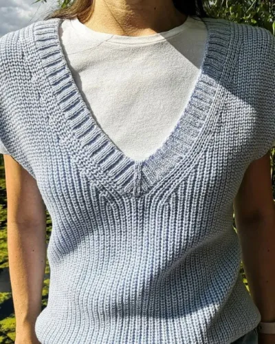 Жилет связан снизу вверх единым полотном.