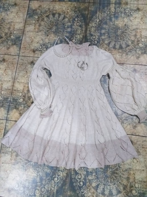 Платье связано на круговых спицах сверху вниз. Бесшовное.