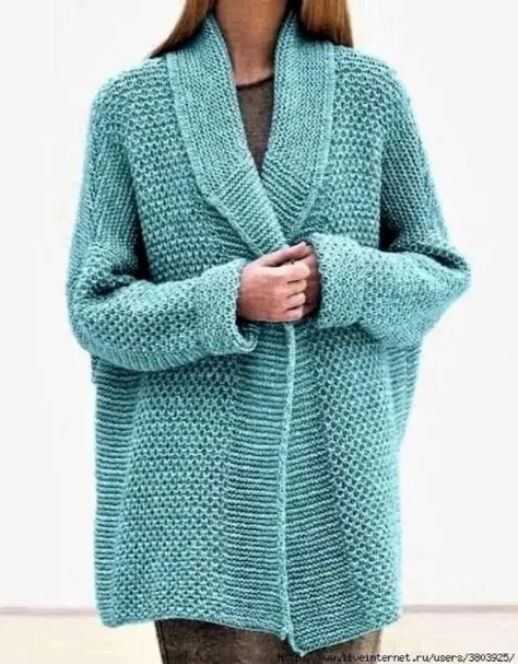 Уютный жакет с несложным узором спицами