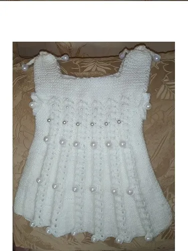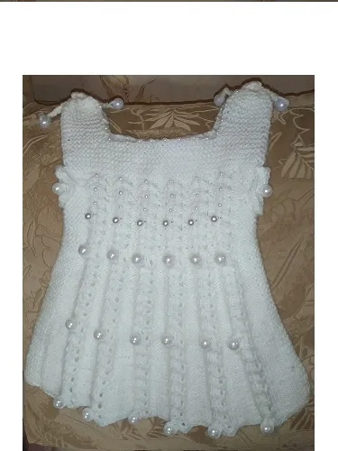 Сарафанчик связан из полушерсти.Бусины ввязывались в процессе работы.