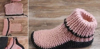 Высокие тапочки спицами