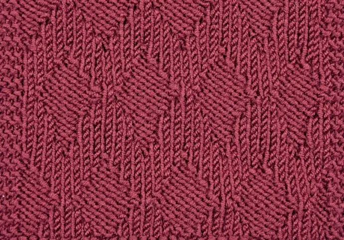 Несложный узор из лицевых и изнаночных петель, который хорошо будет смотреться выполненным в пряже средней толщины.