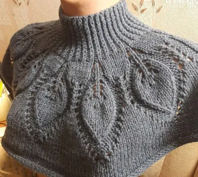 И вот таким образом можно связать любую круглую манишку по понравившейся или придуманной вами схеме кокетки. Можно жаккардом (лопапейса), можно не ажуром, а какой-то резинкой.