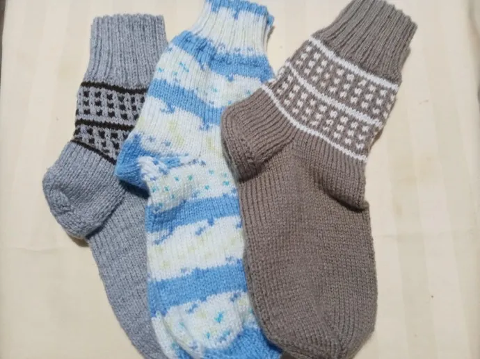 Прежде всего, нитки должны быть крепкими, износоустойчивыми и неприхотливыми в стирке. В случае с носками нагрузка на нить сильно увеличивается, так как белье стирается гораздо чаще, чем все остальное. Большинство людей уверены, что для того, чтобы связать теплые носки, понадобится натуральная ни с чем не смешанная шерсть. Но это мнение ошибочно. Регулярные стирки приведут к тому, что вещь утратит свой первоначальный вид. В первую очередь это касается области пяток. Для того, чтобы связать носки понадобятся нитки, обладающие мягкостью и приятной текстурой. Если же вязать из жесткой пряжи, то конечное изделие будет невозможно носить за счет неприятных ощущений.