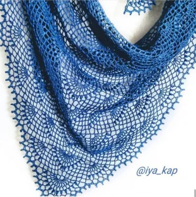 шаль можно вязать снизу вверх по схеме, а можно сверху вниз(как на фото)-тогда нужно схему вязать 2 раза.
