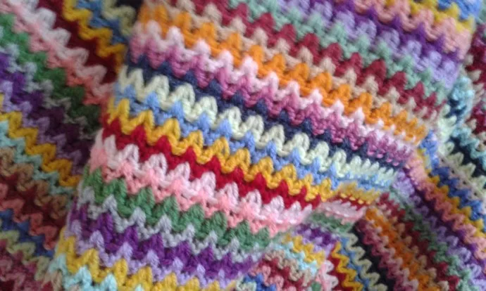 Плед из остатков пряжи крючком