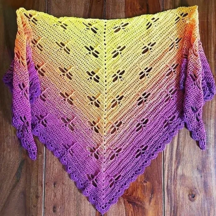 Уютная шаль крючком: вся "соль" в узоре и градиентной пряже