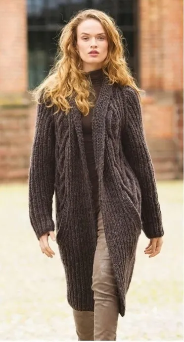 Вам потребуется: пряжа (50% натуральной шерсти, 50% полиакрила; 85 м/50 г) — 750 (800) 850 г коричневой; спицы №6 и 7.