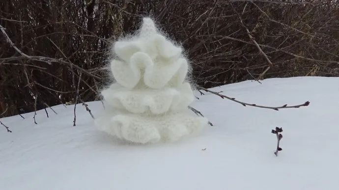 Пушистая ЕЛОЧКА спицами их "пуха норки"/ МК
