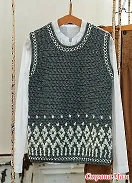 Жилет с жаккардом, вяжем крючком