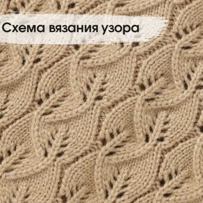 Узор очень красивый, изящный и декоративный, хотя вяжется совсем не сложно. Всё, что нужно уметь — лицевые, изнаночные, накиды и провязывание двух петель вместе.