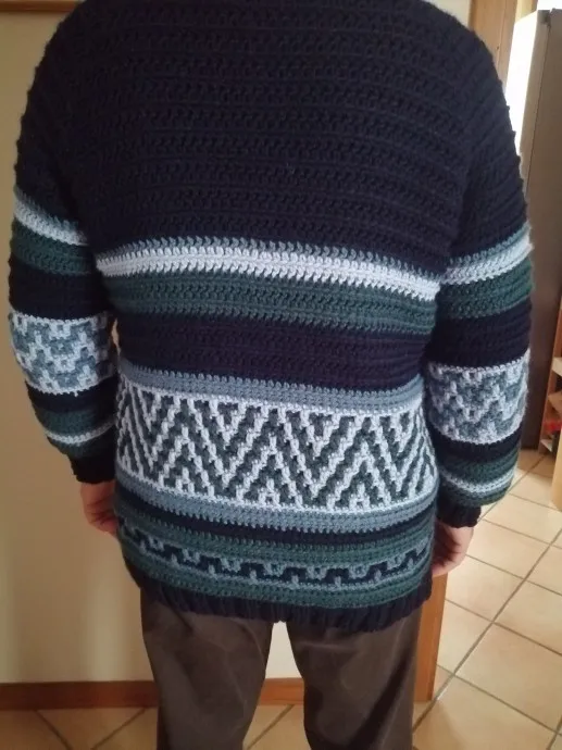 Связала мужу кардиган в мозаичной технике на Рождество.