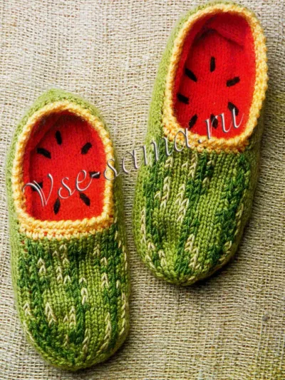 Тапочки спицами "АРБУЗЫ"