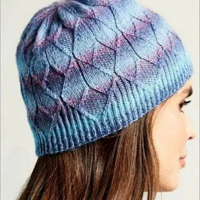 Красивая шапочка узором , похожим на лепестки цветов, вяжем спицами