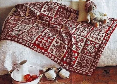 Очень интересный плед! Его бы двойным жаккардом связать! Вот только не умею, ни разу не пробовала.