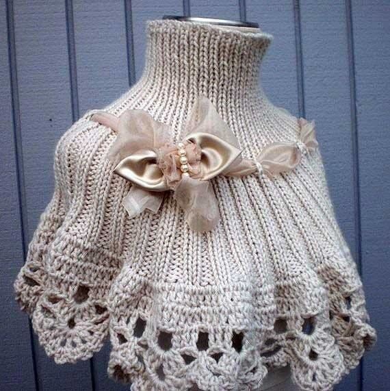 Такими узорами вязать требуемую вам длину по вашим плечам. После этого полотно нужно соединить в круг. Ну и обвязку для красоты делайте по верху и низу.